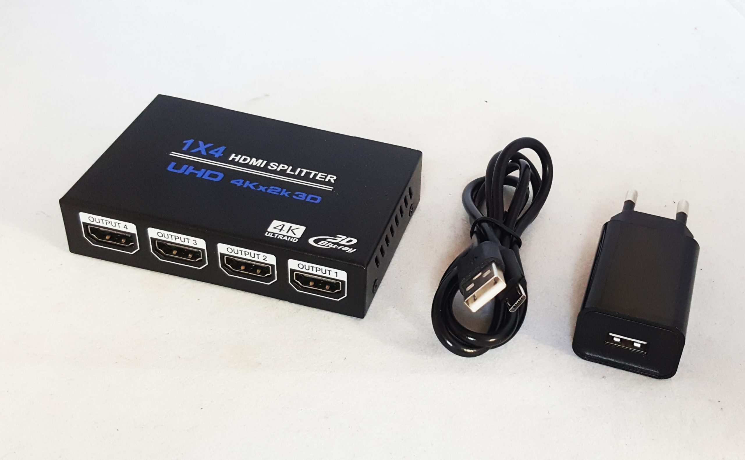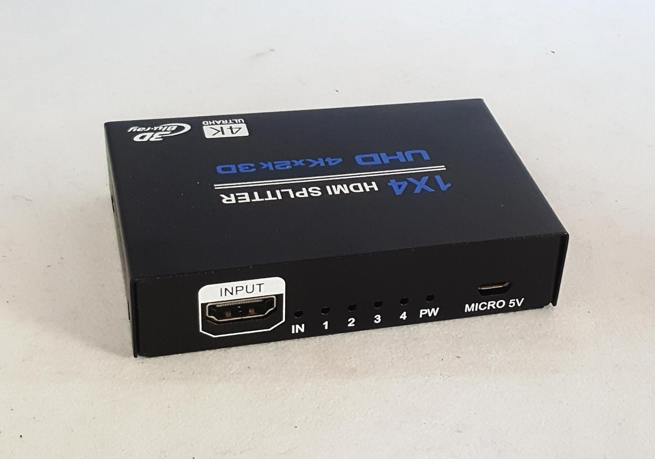 HDMI сплитер 1 во 4 излези HDMI. Дистрибуира видео и аудио сигнал од 1 HDMI извор на 4 HDMI дисплеи истовремено. Без губење на сигналот, без доцнење. 4K Ultra HD резолуција.